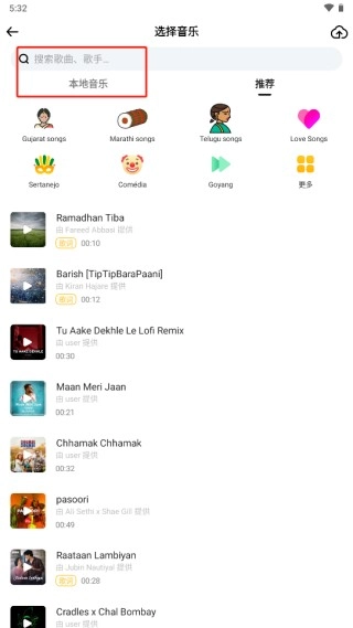 可以在此处添加多种多样的音乐,丰富视频整体