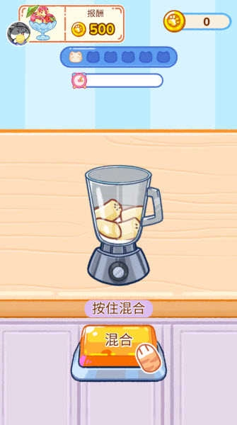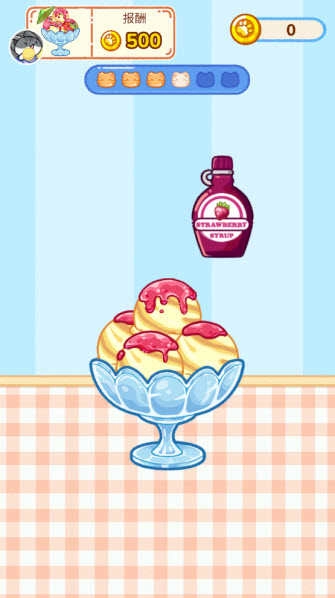 拖动虚拟勺子,把冻好的奶油球取出来,放进你选的杯子里。