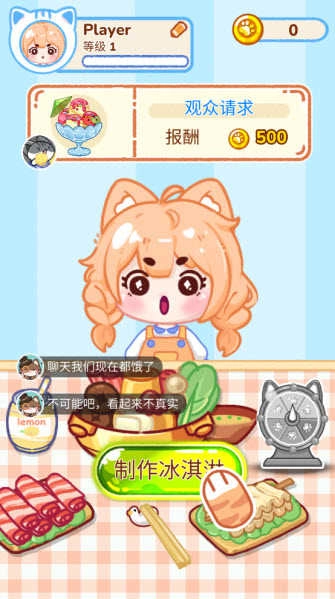 制作前可以留意顶部弹出的信息条,看看观众想品尝哪种口味的冰淇淋,之后点击“制作冰淇淋”进入配置界面。