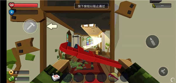点击屏幕左侧的按钮,就能在门框上钉上木板,之后借助远距离的优势,击败迎面走来的僵尸就可以了。