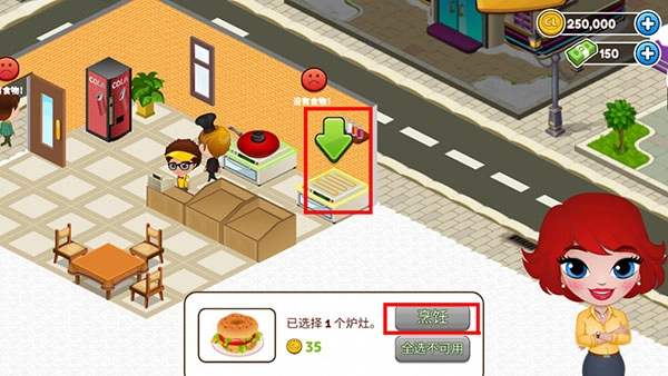 点击空闲的炉灶,会弹出相应的选项,选择【烹饪】。