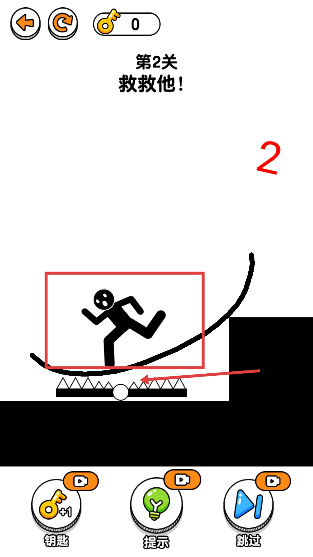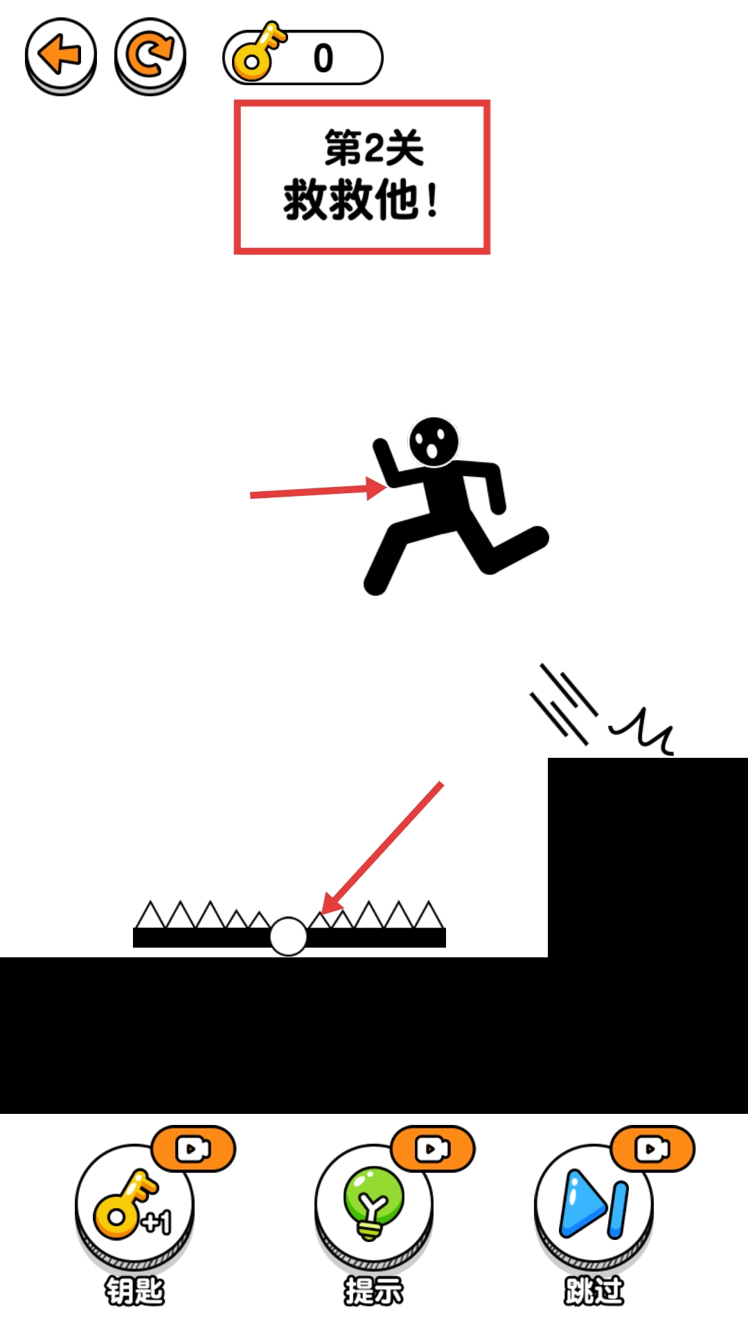在挑战【第2关-救救他】这一关卡时,要留意场景里的【尖刺陷阱】,这是需要避开的危险障碍。