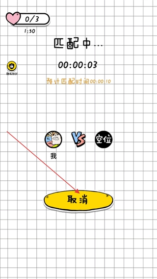 进入游戏后,你可以选择开启对局来进行匹配。匹配对手的过程需要等待一段时间,要是不想等了,也能点击取消按钮重新开始匹配。