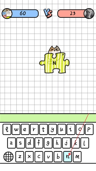 点击下方的键盘,就能打出对应的字母来消除猫咪拼图。