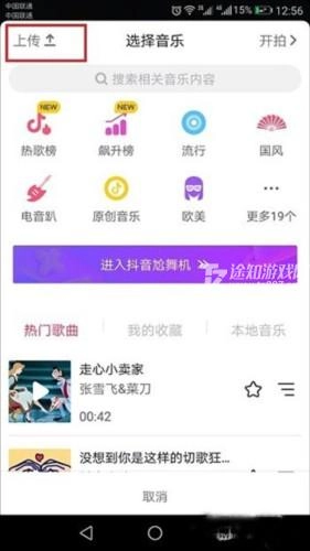 2、进入第二步的音乐选择界面后,点击左上方的“上传”按钮。