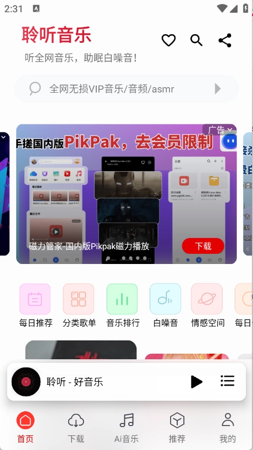 2、在主界面可以看到众多推荐的音乐,找音乐更加轻松。