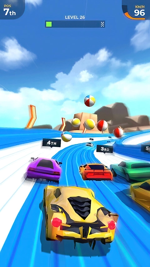 1、借助3D引擎构建沉浸式竞速场景,路面纹理、障碍物形态以及赛车光影效果都细腻逼真,碰撞时的物理反馈自然流畅。