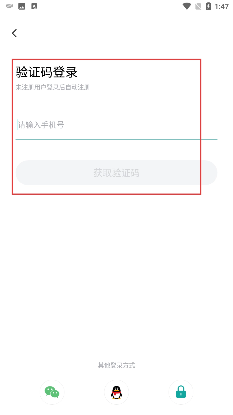 3、选择手机号登录方式后,会进入验证码登录界面,此时需要输入手机号并获取验证码。