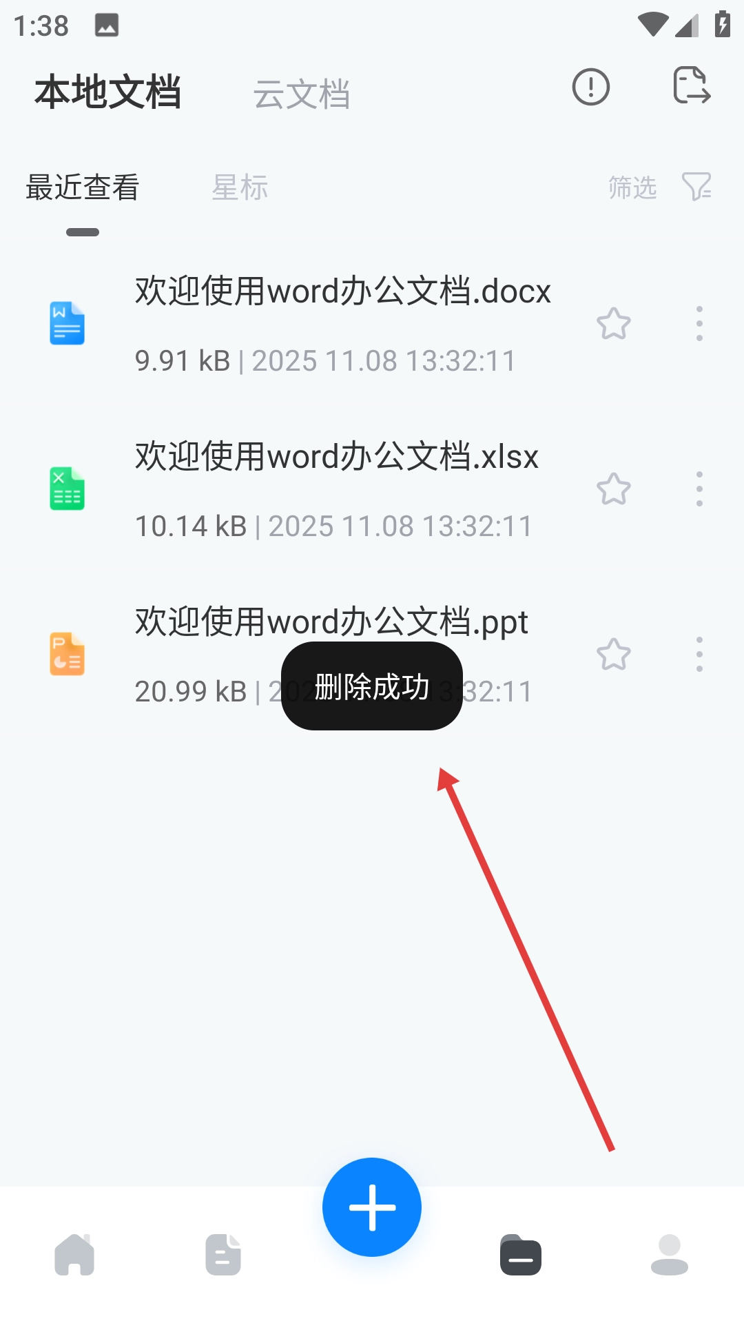 4、删除操作完成后,界面会弹出【删除成功】的提示,以此确认文档已被成功删除。