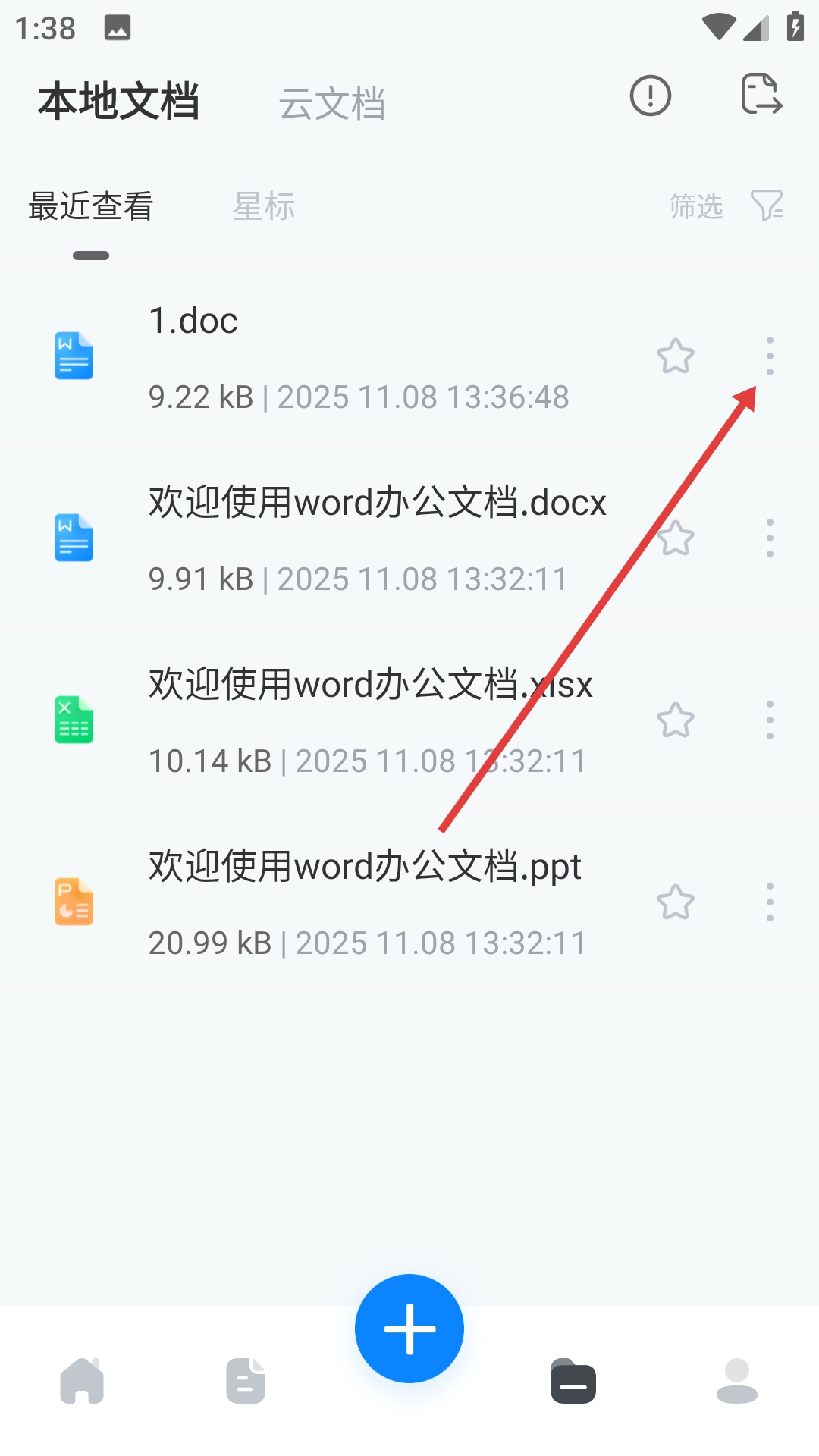 1、点击文档右侧的更多选项按钮,打开操作菜单。