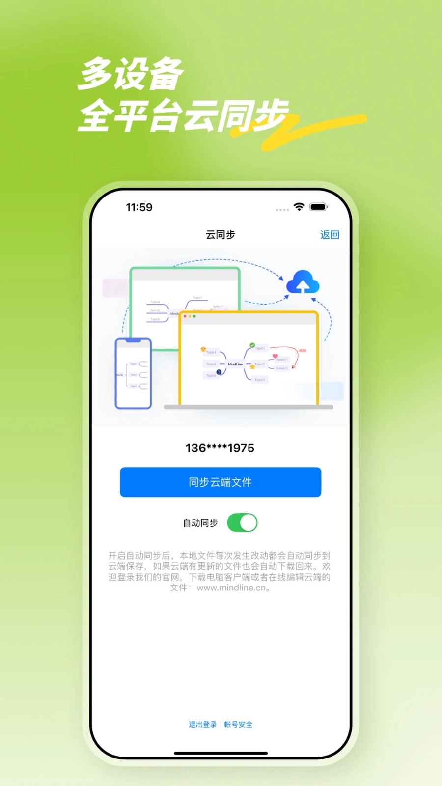 4、进入云同步登录界面后,支持使用手机号或邮箱完成登录操作;登录成功后,不仅能够实现思维导图的云同步功能,还可以将自己制作的导图发布到社区与他人分享,同时也能关注其他用户的导图动态。