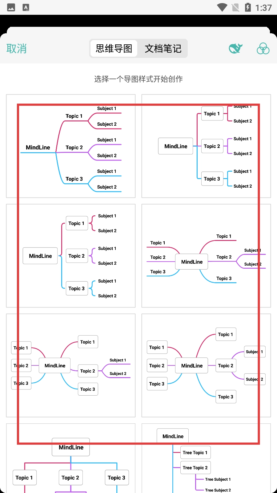 在思维导图的创作界面中,你可以挑选多种不同风格的导图模板来开启创作,以此满足各类思维整理的需求。