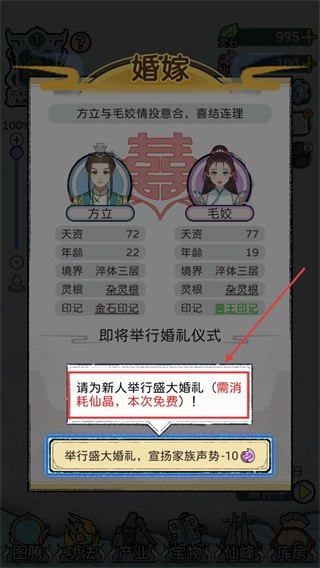 3、方立与毛姣喜结连理时,选择免费举行盛大婚礼,节省资源的同时还能宣扬家族声势。