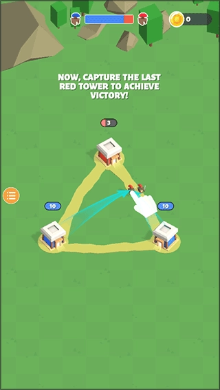 点击你的城堡向其他城堡拖去可以释放士兵攻打。