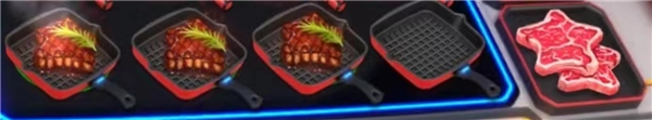 在游戏里,我们只需点击食材,把它放进煎锅,等菜品烤熟后放到配菜的桌面上就行。记得升级餐具,这样能加快制作速度哦。