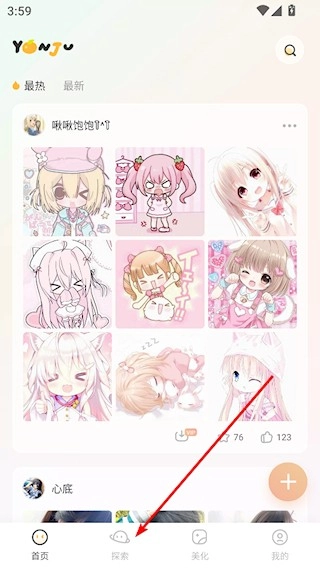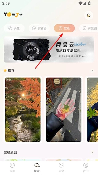 1、打开言橘,点击底部的探索