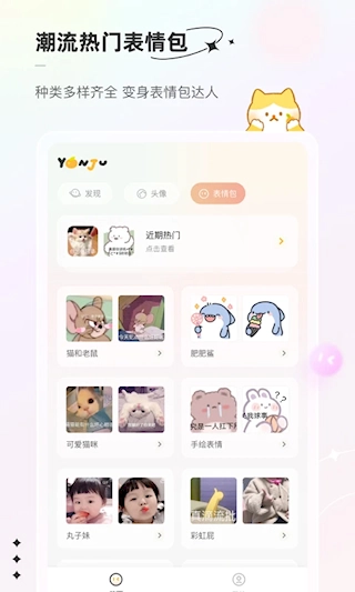 言橘平台提供头像、表情符号等多种资源,其中包含卡通、熊猫头等当下流行的主流类型,能让用户的社交分享更具趣味性。