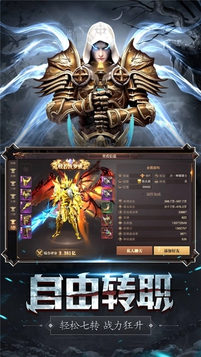 全屏收割,满屏掉落,更有装备保值系统!原创装备进化系统,套装备属性叠加,打造独特属性神装,上万种套装外观自由切换,流光绚丽由你定义!