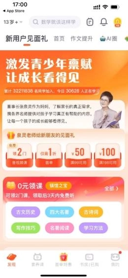 3、会有不同的课程可以学习,把还会有新人福利可以获得哦;