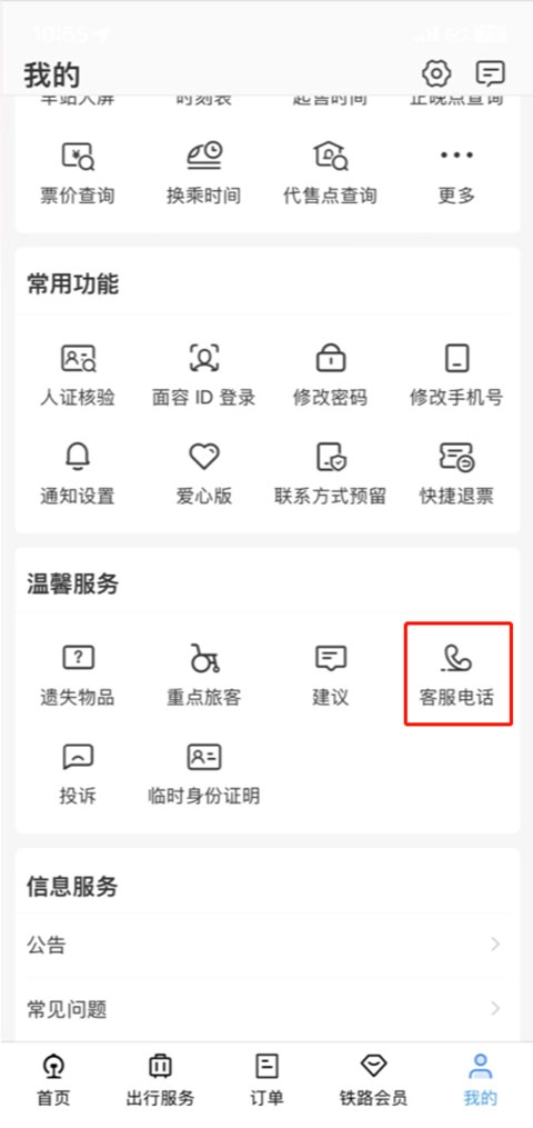 2、接着点击“温馨服务”栏目中得“客服电话”。
