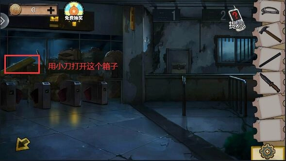 3、返回第二关里的那个箱子所在位置,用小刀撬开箱子就能拿到玩具枪;