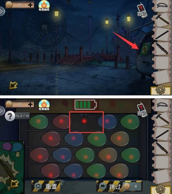 5、接着去击打气球获取钥匙,气球总共需要击打四次,要留意x轴与y轴需保持重合,另外在击打气球的窗口下方还有一个夹子需要拾取。