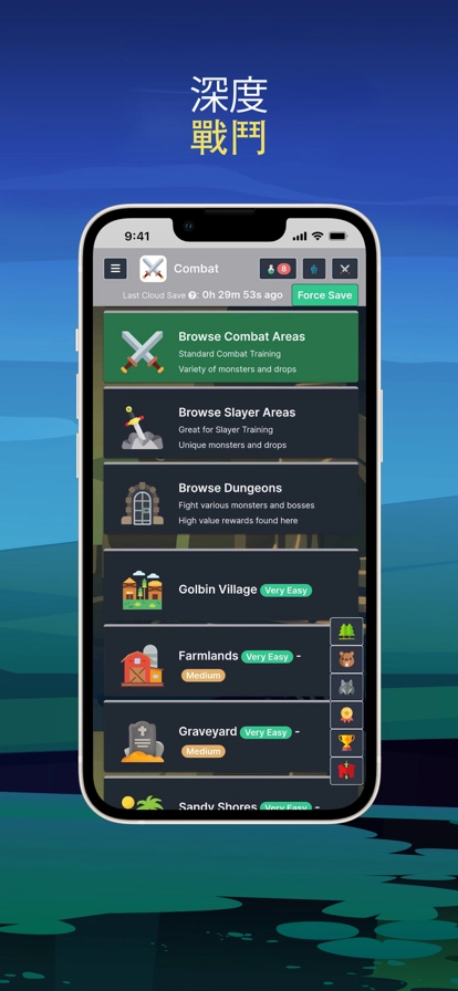 2、近战战斗等级的计算方式为攻击技能等级与力量技能等级之和;远程战斗等级和防御战斗等级则等于各自对应技能等级的1.5倍;而综合战斗等级由基础战斗等级加上0.325倍的战斗技能战斗等级构成,这里的战斗技能战斗等级需取近战、远程、防御三者中的最高值。关于死亡机制:在非硬核模式下,角色死亡后会随机选定当前非食物类的装备槽位,若该槽位有装备则会遗失其中所有物品,若随机到无装备的槽位则不会产生任何影响。进食相关规则:战斗过程中,角色可以通过使用获取到的食物来恢复自身的血量。