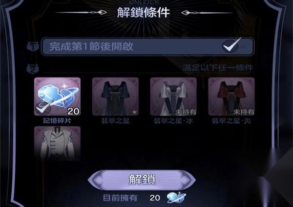 若想开启羁绊剧情,玩家可在羁绊选项界面找到灰色区域,查看未解锁羁绊剧情的达成要求。例如第一章中,玩家需要获取记忆碎片、翡翠之星等道具。需要注意的是,不同男主角对应的羁绊剧情开启方式存在差异。