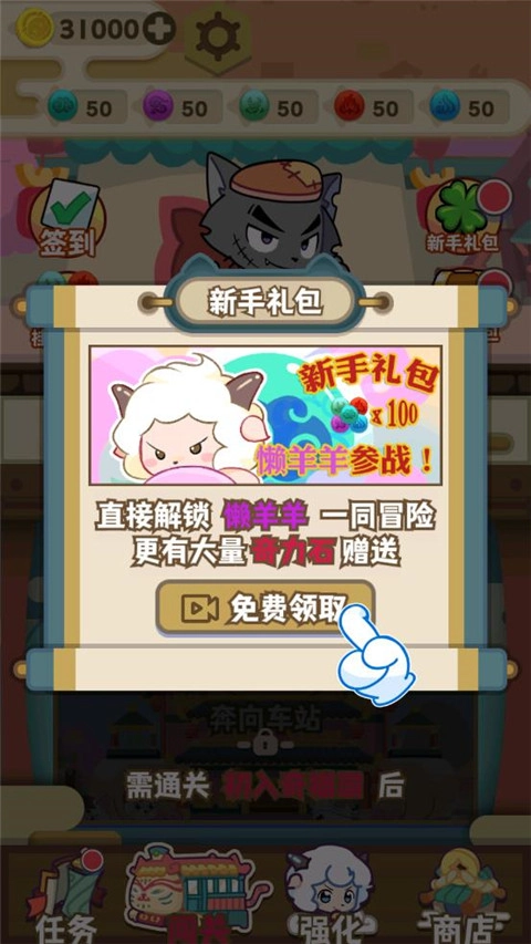 3、新手专属礼包,可直接解锁懒羊羊伙伴共同冒险,还将额外赠送大量奇力石