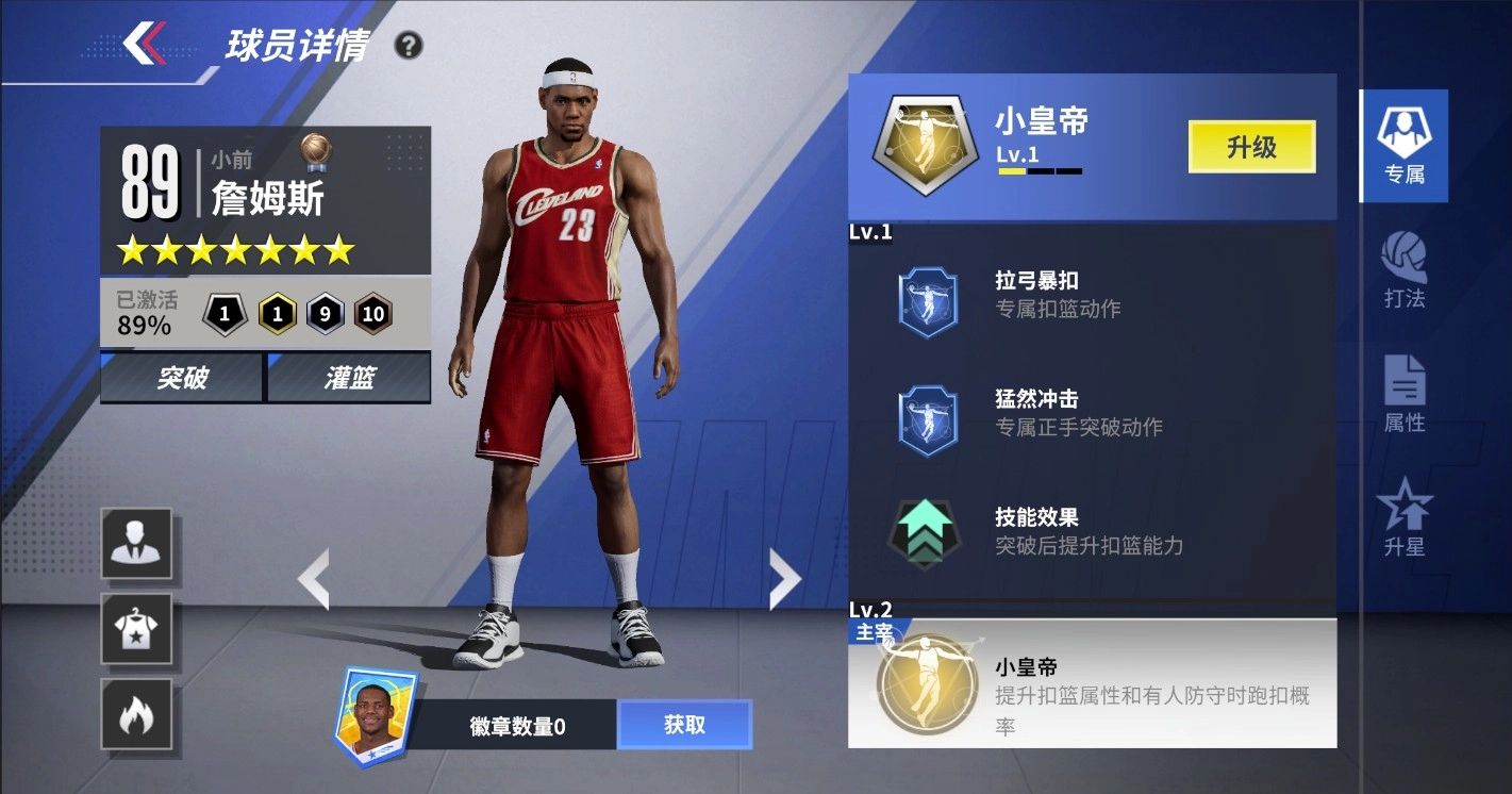 ①专属技能:提高突破后扣篮概率和抗盖帽概率;