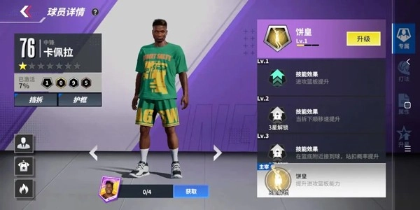 ③主宰技能:提升扣篮属性和有人防守时跑扣概率。