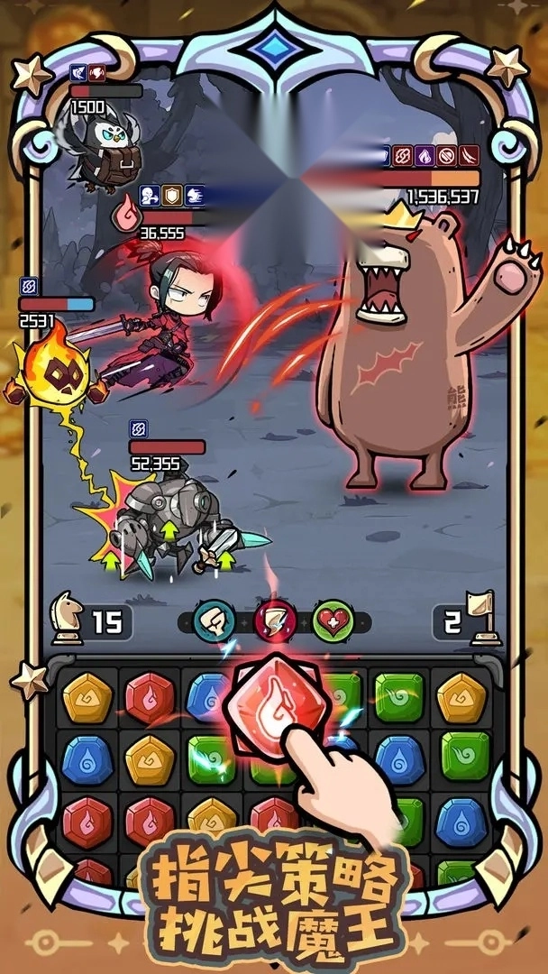 休闲三消与传统回合制的创意结合,既保留了消除闯关的畅快体验,又融入了回合制战斗的策略趣味!每一次消除都或许能扭转战局,只要策略得当,再强大的对手也能应对!