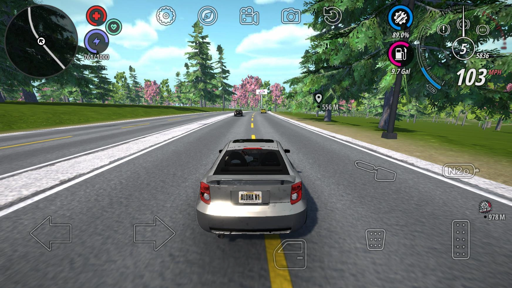 5、上车后,左侧控制车辆转向,右侧则负责前进、刹车、氮气喷射以及漂移操作。
