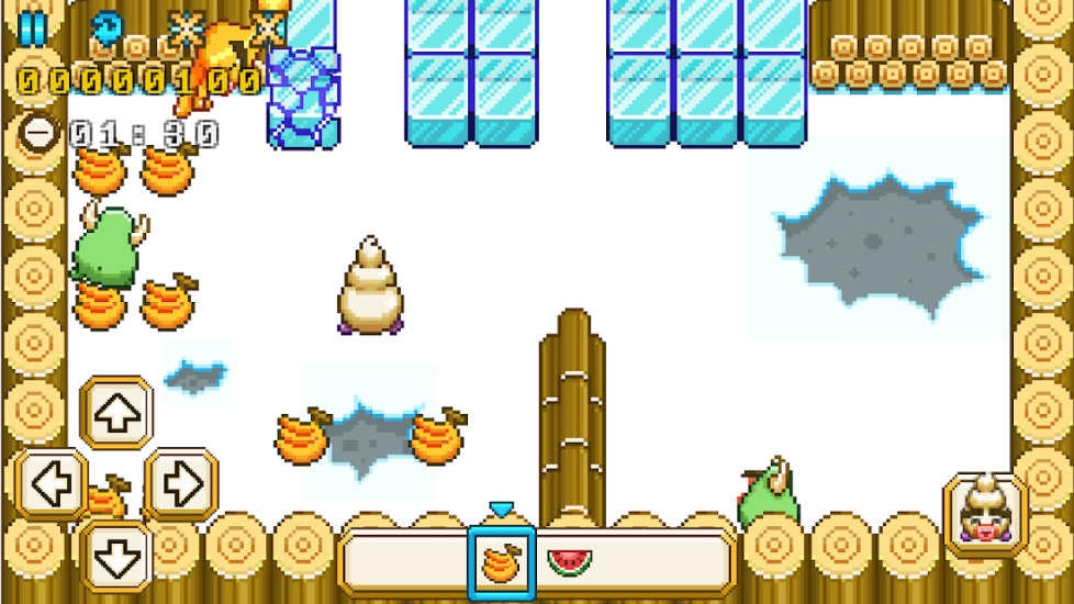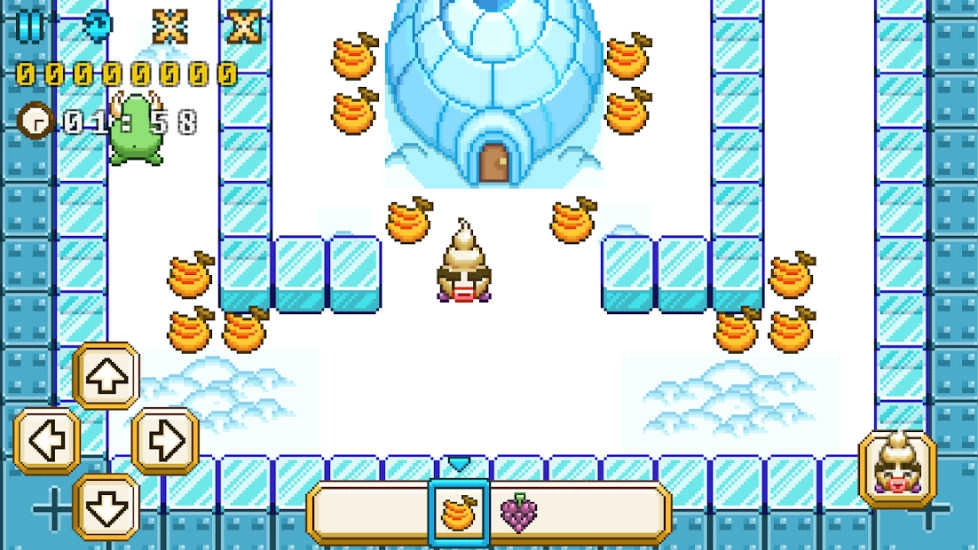冰不是障碍,而是武器。冻结空气造墙阻敌,或猛击地面震裂冰障——你的寒气既是盾牌也是锤子。边跑边扫荡沿途散落的果粒与甜点,在动态变化的地形中抢出一条生路。