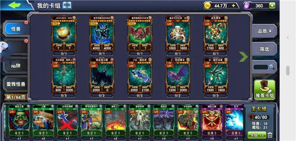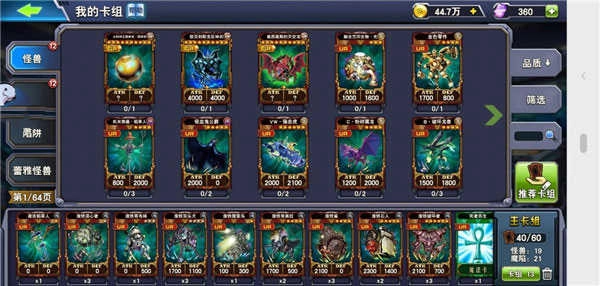 进入怪兽卡列表后,点击【分解】按钮即可启动转化流程。操作前务必确认目标卡牌是否确属冗余,避免误删核心组件。