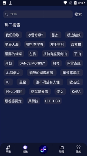 2、支持搜索,能根据歌名或者歌手为您搜索歌曲