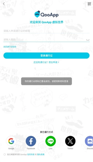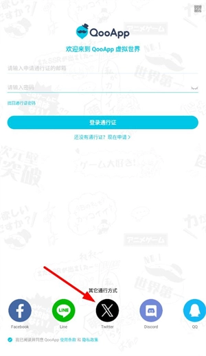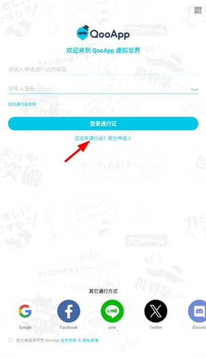 也可以通过点击下方的其他登录方式进行登录,这些方式包括谷歌、脸书、line、X、discord、QQ以及游客登录。