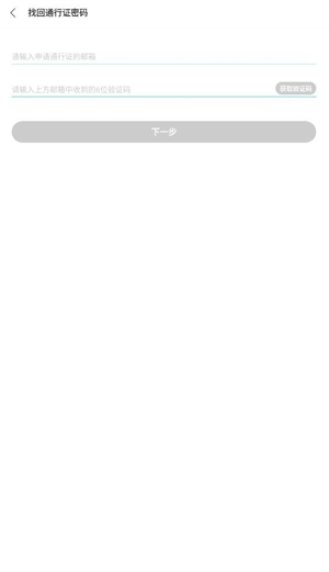 接着填写你注册通行证时所用的邮箱,点击“获取验证码”按钮,随后系统会向该邮箱发送一封包含验证码的邮件,输入收到的验证码后,点击“下一步”继续操作。
