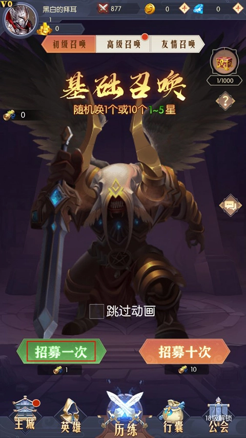 进入游戏后,首先要招募强力英雄,搭建高战力的队伍。