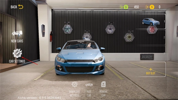 2、进入车库后,点击“car settings”即可开启你的车辆改装之旅。