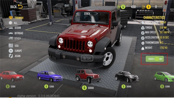 2、在车库里点击“new car”,就能浏览可以购买的车辆。