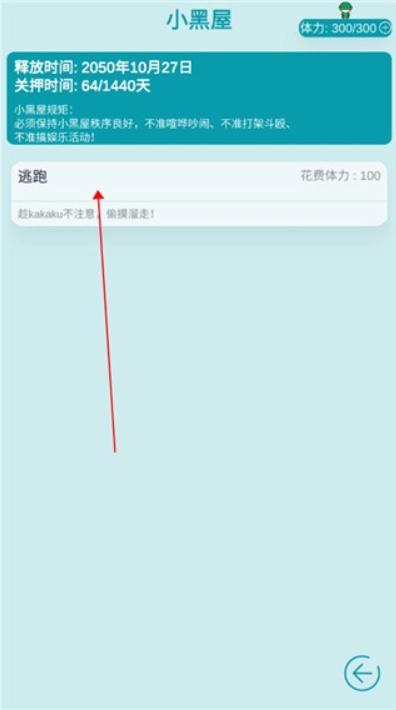 2、小黑屋中会显示你的关押时间,点击【逃跑】。