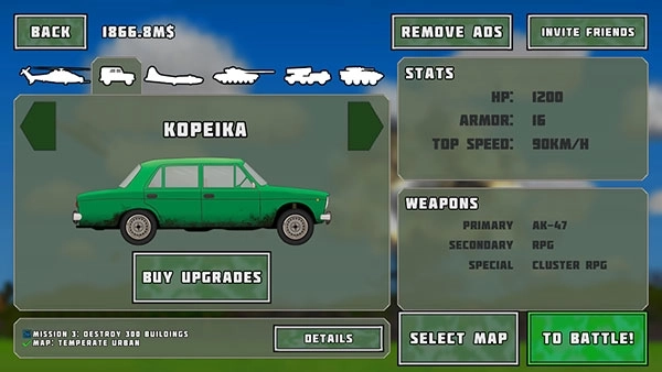 玩家在游戏中将进入一个充满战争的世界,在这里你需要驾驶各种载具去摧毁你所看到的一切,其中包括大量的物理元素,超真实的音效和物理效果给玩家带来不一样的体验,简单就是逼真,玩家可以很容易的看到自己的射击会造成什么样的伤害效果,整个游戏玩起来非常无压力,玩家可以从各种载具或武器中进行选择,只需要操作不同的战斗武器来轰炸或摧毁城市或目标。