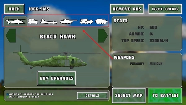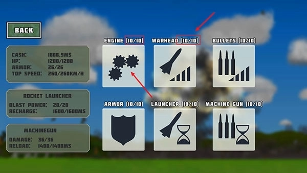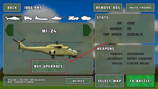 3、当购买成功后,点击【BUYUPGRADES】可进行武器升级