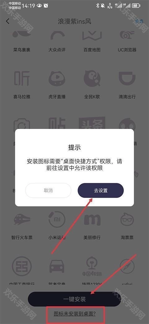 4、若安装失败,可点击下方的“若图标未安装到桌面”选项,之后前往设置中开启相关权限,再重新进行安装操作即可。