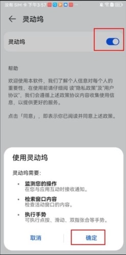 5、最后点击开启并确定,即可正常开启无障碍权限啦