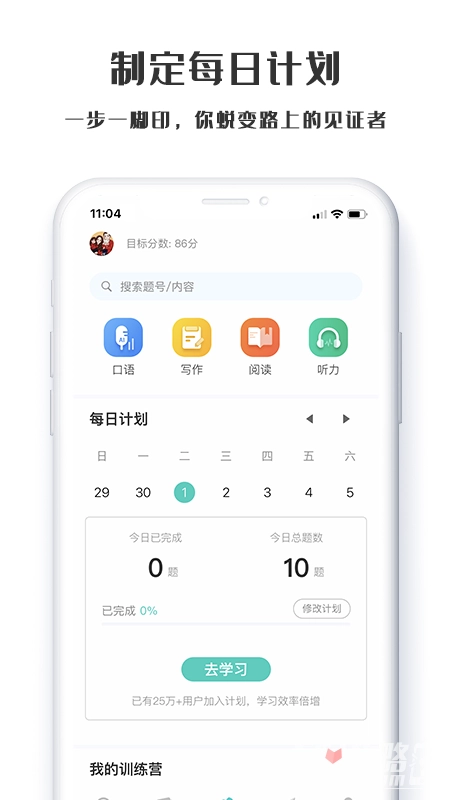 3.支持用户自行设定专属学习计划,并能每日完成英语学习打卡。