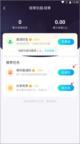 2、会看到自己的轻币,点击下方的“赚轻草”。