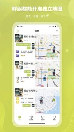 圈尔的群组人员24小时全天位置共享地图功能