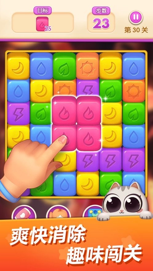 这款轻松欢快的消除类游戏,操作简单,通过消除就能获得不少红包,提现也很轻松。它的玩法模式十分新颖,因此受到了众多玩家的喜爱。游戏规则是消除三个及以上的方块,玩家通过自己的操作来完成消除任务,进而通过关卡并解锁新的关卡。